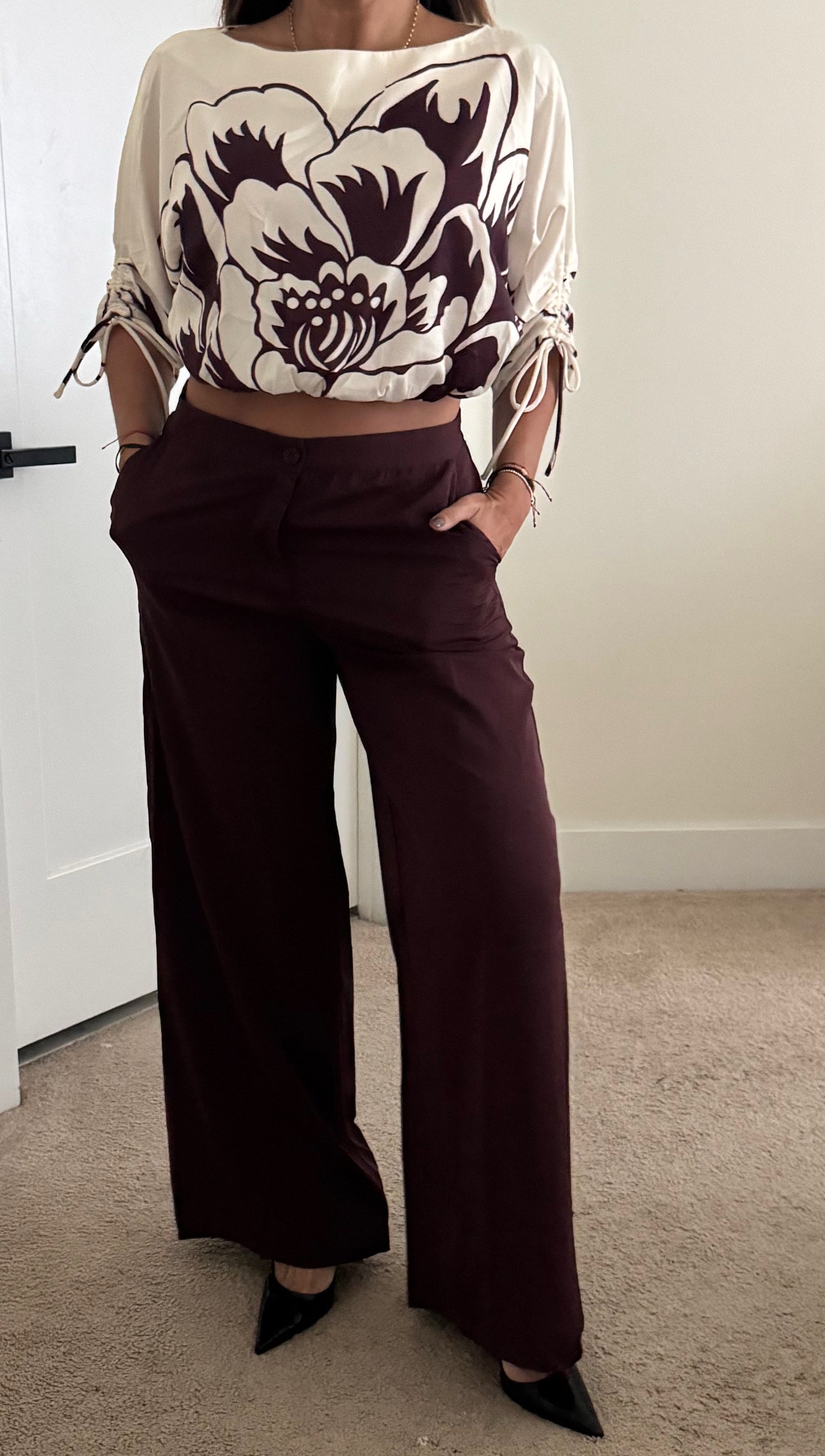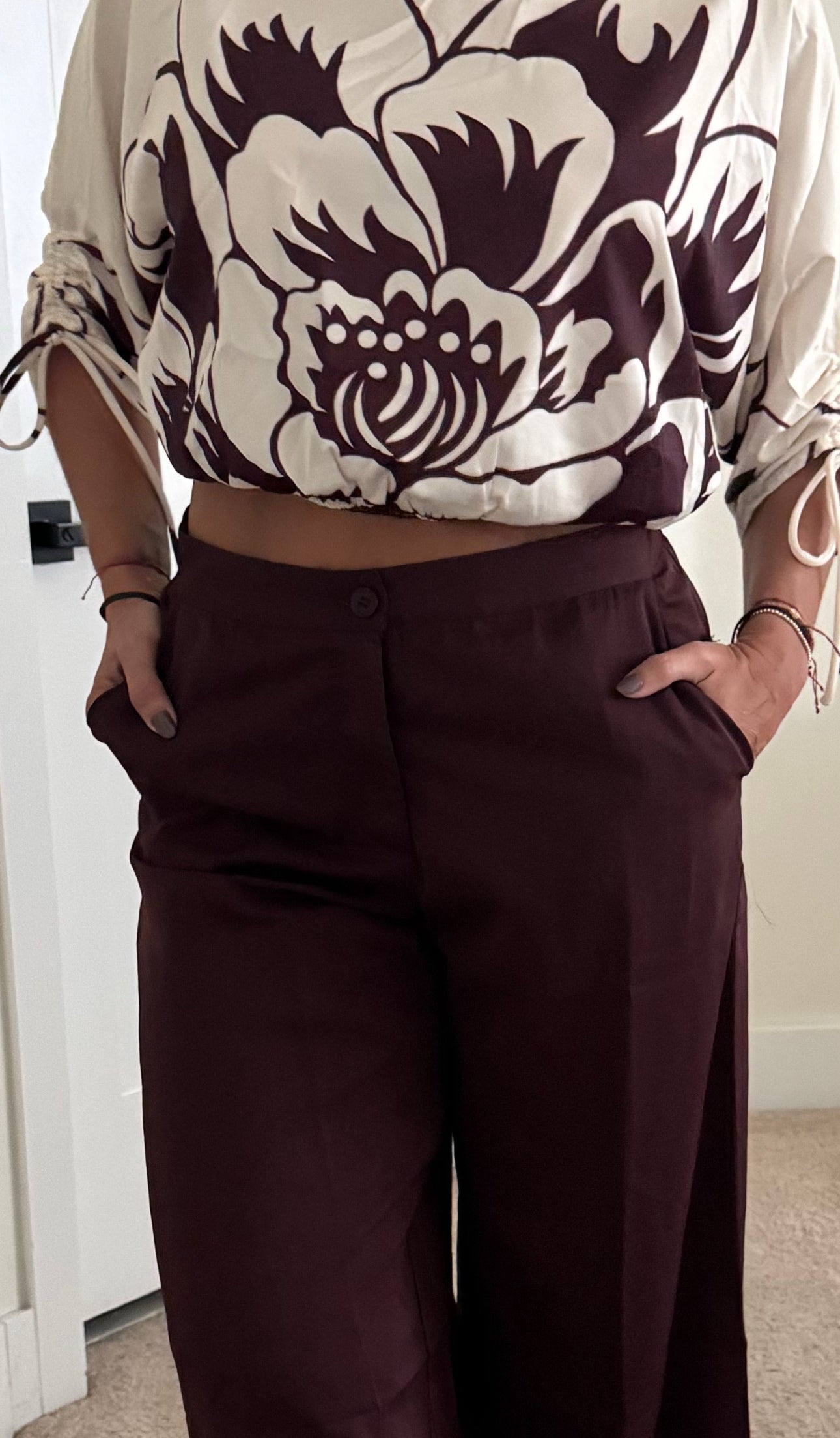 Hermoso set burgundy con goma en la parte detras del pantalon